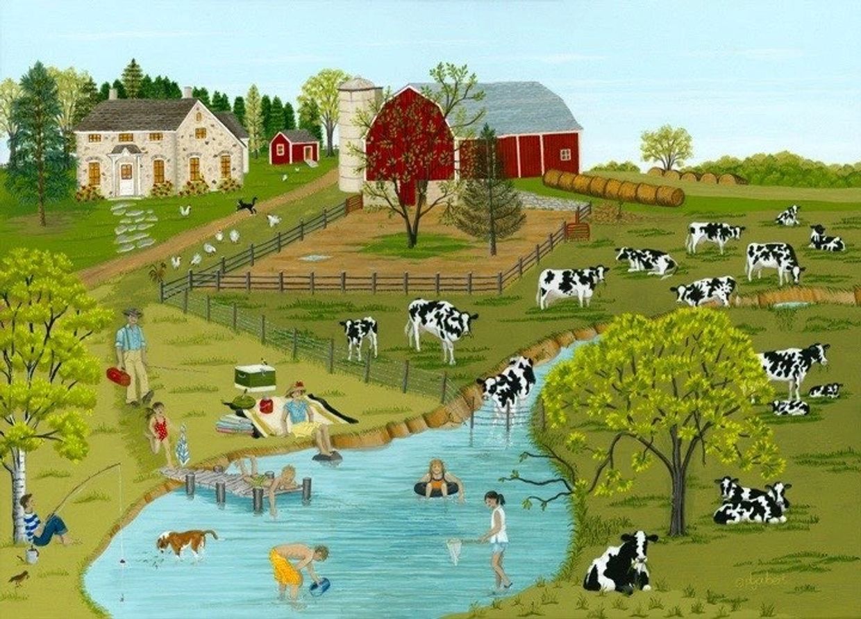 While traveling the back roads of Wisconsin, I have often marveled at the dedication of the small dairy farmers and their families to the land, their livestock, and their lifestyle. It is an incredibly demanding routine, and a sometimes tedious choice they have made. But, perhaps to them, the hard-earned yet simple benefits as represented in "The Dairy Farm Family's Vacation" make the choice a worthy investment.