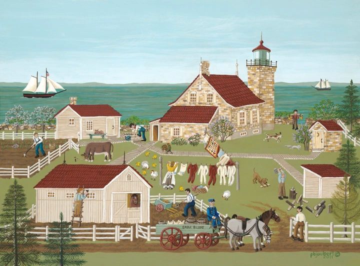 This information is based on the research of Steven Karges in his wonderful book, Keepers of the Lights, on oral histories in Fish Creek Voices (edited by Edward and Lois Schreiber), and on photographs generously supplied by Patti Podgers at Eagle Bluff Light, Eunice Rutherford at the Gibraltar Historical Association, and June A. Larson at the Door County Maritime Museum, Sturgeon Bay.