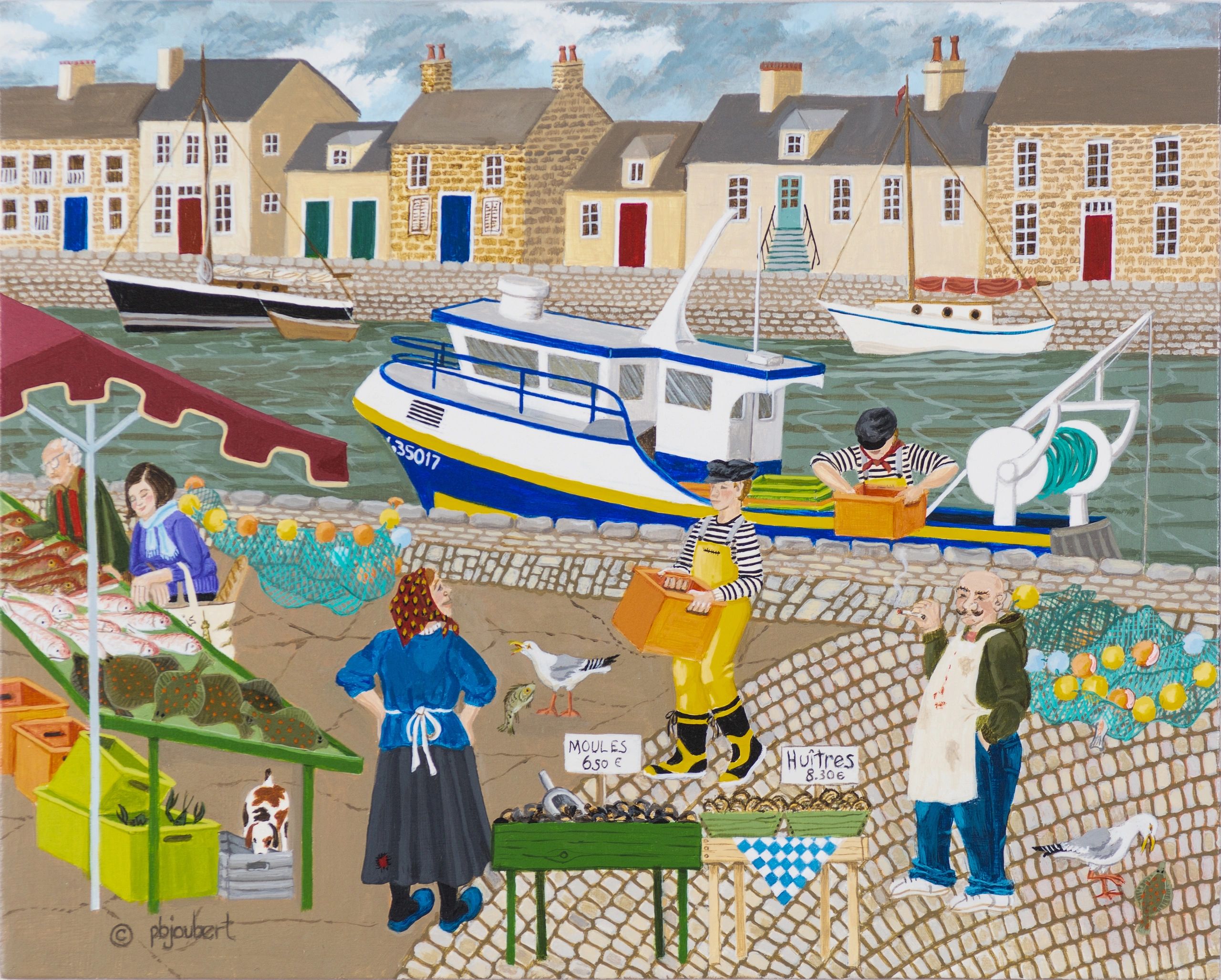 On a recent sojourn in rural Brittany and Normandy, we scoured the coast in vain for the quaint, small fishing villages for which the regions had been so well-known. Instead of charming fishing villages, we found towns given over to the industry of tourism, complete with bustling cafes and souvenir shops whose bounty overflowed onto the sidewalks. Finally, on our last morning, we rose early to visit a market in a town approximately 8 kilometers from our lodging. The market featured local produce, crafts, breads, pastries, meats and cheeses, and—yes—fish! Not just fish, but a mélange fresh from the sea: lobster, huge shrimp, mussels, oysters, baby shark, sole, and many others. The emptied commercial fishing boats were tied up along the tidal canal, while the gulls picked breakfast from the drying nets.